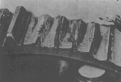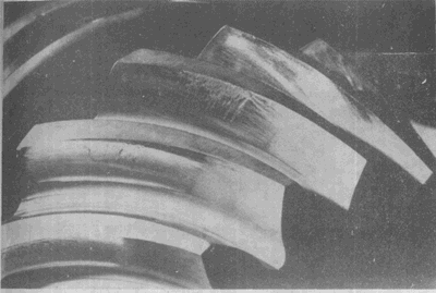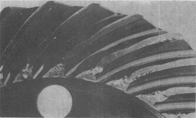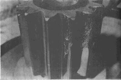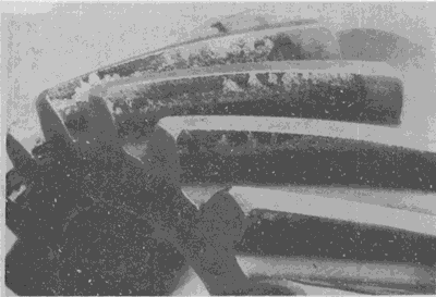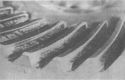 弧齒錐齒輪輪齒上的嚴(yán)重膠合。有時這種損傷引起工作溫度升高。