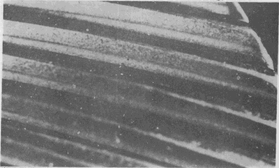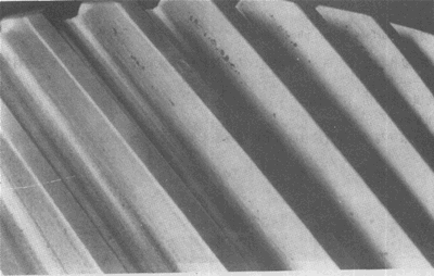 齒面上垂直于滑動方向的微小皺紋。這些小皺紋本身也是波狀的,而不是直的,看上去其形狀如同風(fēng)吹沙土,水沖泥漿一樣,只是規(guī)模小得多而已。