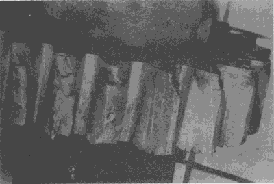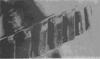 在這幾個輪齒上由于齒輪傳遞的載荷集中于靠近一端的一小部分齒面上,因而造成齒面嚴(yán)重點蝕,從而導(dǎo)致其下一輪齒疲勞折斷。