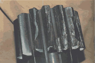 軟鋼小齒輪輪齒冷塑變后斷裂。