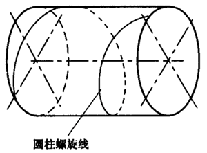 動(dòng)點(diǎn)沿圓柱面上的一條母線作等速移動(dòng),而該母線又繞圓柱面的軸線作等角速度旋轉(zhuǎn)運(yùn)動(dòng)時(shí),動(dòng)點(diǎn)在此圓柱面上的運(yùn)動(dòng)軌跡(見(jiàn)圖3)。