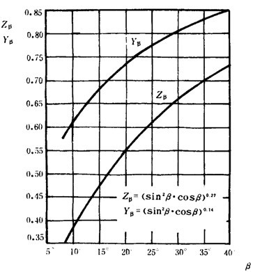 螺旋角系數(shù)是考慮螺旋角影響齒面相對曲率半徑,從面影響輪齒應(yīng)力的系數(shù)。其值可按圖5查取,或按圖中公式計(jì)算。