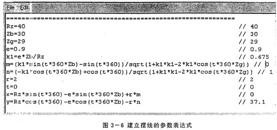 參照上述的擺線輪齒廓形狀曲線表達(dá)式,在UG中建立的擺線的參數(shù)表達(dá)式見下圖: