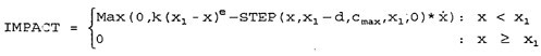 本論文中所定義的接觸力都是基于IMPACT函數(shù)的接觸模型。在ADAMS中定義IMPACT函數(shù)的方程為: