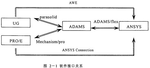 以上四個軟件均是當(dāng)今比較流行且功能強(qiáng)大的大型CAD/CAE軟件,然而考慮到ADAMS的內(nèi)核就是Parasolid,從UG中導(dǎo)入ADAMS的模型包含了在UG里定義的密度、質(zhì)量等幾何屬性,不需作任何變更就可使用;而PRO/E與ADAMS間通過Mechanism/pro模塊進(jìn)行連接時存在較多的問題,經(jīng)過長時間的摸索才連通,且發(fā)現(xiàn)在PRO/E里南非先將各個零件定義為剛體,作為子裝配只能定義為一個剛體,可是像RV減速器這樣的大模型在裝配過程中不可避免地含有子裝配并且子裝配中的零件間有相對運(yùn)動,將其定義為一個剛體是錯誤的,為此,本課題中采用了UG、ADAMS與ANSYS形成的分析平臺。