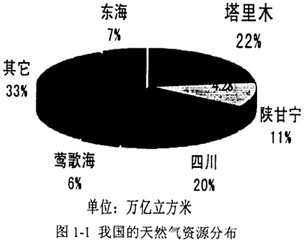 3。此外,從圖1-1可以看到,陜西、四川、青海等地的天然氣儲量也都十分可觀,氣田分布的西傾狀況比較明顯。