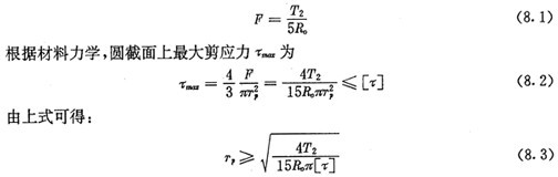 所有基本設(shè)計(jì)參數(shù)確定后,應(yīng)按軸銷所擔(dān)負(fù)的最大載荷來(lái)校核上面初選的軸銷半徑TP是否合適,根據(jù)最大剪應(yīng)力計(jì)算公式有: