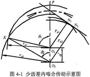 變位系數(shù)的確定是少齒差內(nèi)嚙合傳動(dòng)設(shè)計(jì)的關(guān)鍵。文獻(xiàn)中所述的內(nèi)、外齒輪都按滾齒加工的計(jì)算公式推導(dǎo)出的變位系數(shù)的迭代公式,與內(nèi)齒輪插齒、外齒輪滾齒的實(shí)際加工情況不一致,雖然能夠保證給定的重合度和齒廓不重迭干涉系數(shù)的要求,但是不能保證標(biāo)準(zhǔn)頂隙,而且一般得出的嚙合角也比較大。本章推導(dǎo)了少齒差內(nèi)嚙合傳動(dòng)實(shí)際加工情況的變位系數(shù)的迭代公式,解決了上述問題。