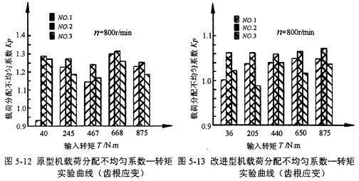 對(duì)三環(huán)減速機(jī)原型機(jī)和改進(jìn)型機(jī)進(jìn)行效率實(shí)驗(yàn),在相同的傳動(dòng)條件下,改進(jìn)型機(jī)的效率略高于原型機(jī),在額定轉(zhuǎn)速和額定轉(zhuǎn)矩下,傳動(dòng)效率可達(dá)92%。對(duì)三環(huán)減速機(jī)原型機(jī)和改進(jìn)型機(jī)的環(huán)板齒根彎曲應(yīng)力和環(huán)板薄弱部位應(yīng)力進(jìn)行測(cè)量,進(jìn)行載荷均衡實(shí)驗(yàn)。結(jié)果表明改進(jìn)型機(jī)具有很好的均載效果,實(shí)驗(yàn)還驗(yàn)證了載荷分配不均勻系數(shù)耳的理論計(jì)算方法的正確性及實(shí)際多少對(duì)齒嚙合問(wèn)題。