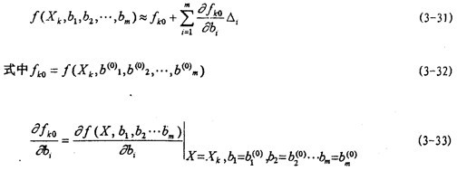 得一組線性方程組,在n>k的情況下,聯(lián)立求解這一線性方程組即可求得唯一的一組B值。根據(jù)此法求得(3-13)式中參數(shù)值并代回可得: