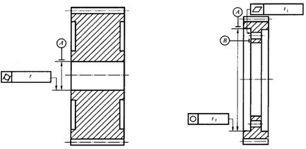 在與小齒輪做成一體的軸上,常常有一段安裝一個(gè)大齒輪。這時(shí)大齒輪安裝面的公差應(yīng)妥善考慮大齒輪輪齒的質(zhì)量要求所進(jìn)行選擇。常用的適當(dāng)辦法是相當(dāng)于已經(jīng)確定的基準(zhǔn)軸線規(guī)定允許的跳動(dòng)量。