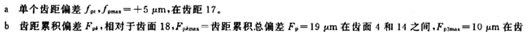 圖25中注明了切向綜合總偏差Fi′,最大一齒切向綜合偏差fi′以及齒廓分量“a”和單個齒距成分“b”。