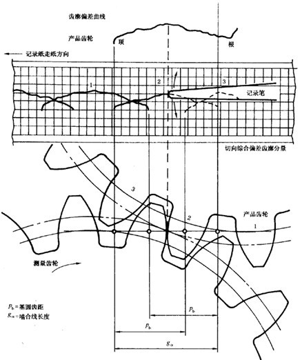 在切向綜合偏差檢測中,如果所用的測量齒輪是完全精確的,這就意味著切向綜合偏差圖上所表示的只是產(chǎn)品齒輪的輪齒各要素的偏差的綜合。