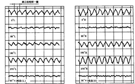 取在直徑上對置的同側(cè)位置的齒面,從其螺旋線圖上可以獲得適用的平均值,然而,如螺旋線傾斜偏差沿齒輪圓周變化時,則必須至少取三個均布齒面的跡線。否則其偏差不一定能被發(fā)現(xiàn)。