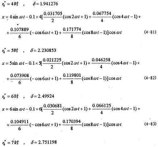 在非線(xiàn)性振動(dòng)系統(tǒng)中,為了求出系統(tǒng)的各次諧共振解,必須考慮(4-15)中各次諧波的影響,為此對(duì)以上方法作如下改進(jìn):