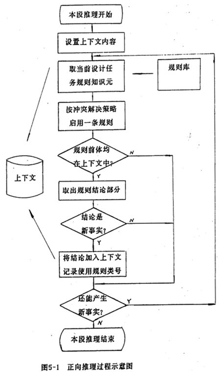 正向推理系統(tǒng)中,用戶先輸入與當(dāng)前問題有關(guān)的信息,構(gòu)成當(dāng)前數(shù)據(jù)庫(上下文)。正向推理的示意圖如圖5-l。