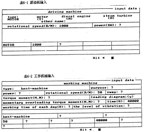 系統(tǒng)的輸入是專家系統(tǒng)的“開(kāi)場(chǎng)條件”,人工設(shè)計(jì)的方法是由定貨單位向設(shè)計(jì)人員提供任務(wù)書(shū)(以口頭或書(shū)面形式),設(shè)計(jì)人員通過(guò)這些已知條件進(jìn)行設(shè)計(jì)工作。專家系統(tǒng)則要求設(shè)計(jì)人員(或由定貨人員)與計(jì)算機(jī)進(jìn)行“對(duì)話”,以便使專家系統(tǒng)了解原始的已知條件。事實(shí)上,由于受人工智能和計(jì)算機(jī)技術(shù)發(fā)展的限制,還不能同計(jì)算機(jī)形成視、聽(tīng)對(duì)話,因而,圓柱齒輪減速器設(shè)計(jì)專家系統(tǒng)仍采用傳統(tǒng)CAD所采用的方法,即采用精確的輸入方式(或稱數(shù)據(jù)輸入方式而非語(yǔ)言物入方式)。