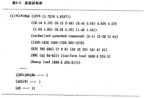 軸、箱體以及對(duì)大型組裝具輪采用的支撐部分的材料的選擇方法類同于齒輪材料,在此不詳細(xì)討論。若當(dāng)前材料數(shù)據(jù)庫(kù)無(wú)可供選擇的材料時(shí),系統(tǒng)便要求用戶輸入指定的材料特性,并按相應(yīng)的格式加入到材料數(shù)據(jù)庫(kù),以便不斷地完善系統(tǒng)的材料庫(kù)。