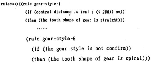 規(guī)則l的條件項(xiàng),初次使用時(shí),由于中心距尚未確定,不能觸發(fā)運(yùn)用。系統(tǒng)采用的方法是先用初次選用的齒形參與傳動(dòng)計(jì)算,待求出中心距時(shí)再次調(diào)用該規(guī)則集進(jìn)行推理。若于原來(lái)的假設(shè)發(fā)生沖突,撤銷(xiāo)原假設(shè)并以新事實(shí)重新進(jìn)行計(jì)算。