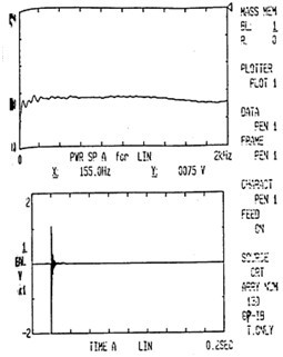 試件7上的振動(dòng)信號(hào)與脈沖激勵(lì)的響應(yīng)信號(hào)通過(guò)傳感器20取出信號(hào),然后經(jīng)過(guò)放大器21放大后,用磁帶記錄儀22記錄并可采用頻譜分析儀23監(jiān)控并分析,而其上的噪聲信號(hào)可以通過(guò)聲強(qiáng)儀25的測(cè)頭26取出信號(hào)后送入22和23中用于分析研究。