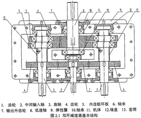 根據(jù)以上分析,本文設(shè)計了如圖2.1 所示的新型雙環(huán)減速器結(jié)構(gòu),并申請獲得了國家實用新型專利(專利號:ZL 01 2 06843.8 ),其特點如下: