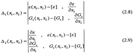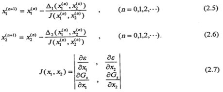 方程組(2.4)的求解,實際上是兩條限制曲線交點的求法,如圖(2.2)所示。根據(jù)文獻(xiàn),求點X1和X2,用牛頓法迭代,逐步逼近到交點。其迭代程序如下: