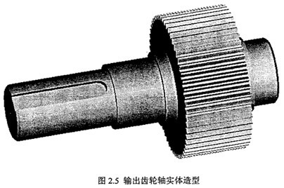 圖2.5為本文雙環(huán)減速器輸出齒輪軸實體造型圖。圖2.6為本文雙環(huán)減速器實驗樣機(jī)的裝配圖的俯視圖。本文的雙環(huán)減速器實驗樣機(jī),采用一種新型的環(huán)式行星傳動裝置。