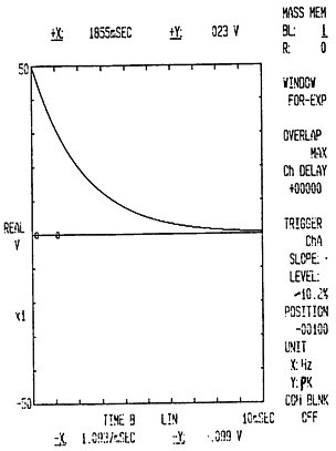 脈沖錘擊信號送入 CF-355中的S通道,響應(yīng)信號送入B通道,對脈沖激勵所加的力窗函數(shù)及內(nèi)觸發(fā)脈沖的方向、數(shù)值大小及位置如圖4-1示,對脈沖響應(yīng)所加的指數(shù)窗函數(shù)如圖4-2示。