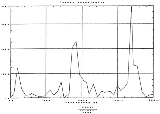 1、對系統(tǒng)輸入軸進(jìn)行脈沖激勵實(shí)驗,通過FFT計算出其頻響函數(shù)。