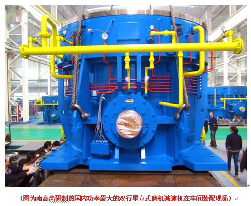 南高齒成功研制國內(nèi)功率最大的(5400kW)雙行星立式磨機減速機