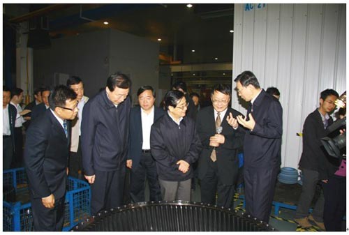 4月14日上午,在江蘇省委書記、省人大常委會(huì)主任羅志軍,江蘇省委副書記、省長李學(xué)勇及省市相關(guān)部門領(lǐng)導(dǎo)陪同下,由浙江省委書記、省人大常委會(huì)主任趙洪祝率領(lǐng)的浙江省黨政代表團(tuán)來到南高齒風(fēng)電產(chǎn)業(yè)園參觀考察。集團(tuán)公司董事長兼總經(jīng)理胡曰明等集團(tuán)公司領(lǐng)導(dǎo)率員工熱情接待了來賓。代表團(tuán)在參觀期間,詳細(xì)了解了南高齒生產(chǎn)研發(fā)、市場拓展、人才戰(zhàn)略和二次創(chuàng)業(yè)等各方面情況,對(duì)南高齒業(yè)已成為國際最大風(fēng)電裝備制造企業(yè)給予了高度評(píng)價(jià),并充分肯定了南高齒為中國先進(jìn)制造業(yè)和綠色能源產(chǎn)業(yè)發(fā)展所起到的積極貢獻(xiàn),希望南高齒在2011年能有長足發(fā)展,二次創(chuàng)業(yè)工作越做越好。