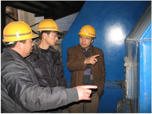(南高齒質(zhì)量萬(wàn)里行人員在現(xiàn)場(chǎng)傾聽(tīng)減速機(jī)運(yùn)行時(shí)是否有異常噪音)