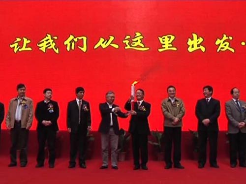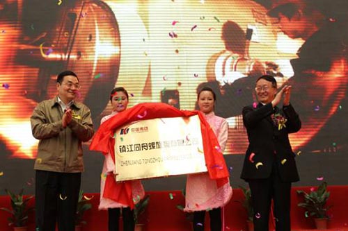 鎮(zhèn)江市市長(zhǎng)劉捍東(左)、中國(guó)傳動(dòng)董事會(huì)主席胡曰明(右)共同為公司揭牌。
