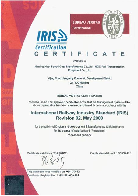 近日,南京高精傳動設(shè)備制造集團有限公司(簡稱:南高齒)子公司南京傳動軌道交通設(shè)備有限公司獲得IRIS(國際鐵路行業(yè)標(biāo)準(zhǔn))認(rèn)證證書,標(biāo)志著南京傳動軌道交通設(shè)備有限公司質(zhì)量管理水平與國際水平進一步接軌,為公司軌道交通產(chǎn)品進一步拓展國際鐵路高端市場奠定了堅實的基礎(chǔ)。同時,成功獲取IRIS認(rèn)證也是南高齒質(zhì)量戰(zhàn)略步驟的重要一環(huán),它進一步保證了南高齒為國際軌道交通領(lǐng)域提供高質(zhì)量和性能突出的傳動產(chǎn)品。
