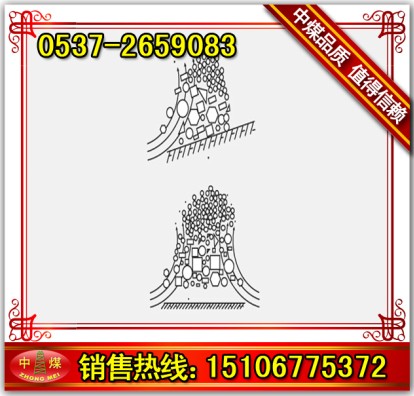 煤矸石中可燃物主要黃鐵煤和煤而氧氣及熱量積聚環(huán)境與其堆積結(jié)構(gòu)關(guān)。矸石山在自然堆放(平地或順坡堆放)過(guò)程中均會(huì)發(fā)生矸石粒度偏析在矸石山內(nèi)產(chǎn)生“煙囪效應(yīng)”(如圖所示)。氧化產(chǎn)生熱量-部分由“煙囪效應(yīng)”隨空氣帶出另一部分則積聚在矸石山中。當(dāng)某-局部溫度達(dá)到自燃點(diǎn)時(shí)便引起自燃且逐步向四周蔓延。