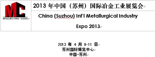 經(jīng)國家有關(guān)部門批準(zhǔn),由中國鋼鐵工業(yè)協(xié)會,中國貿(mào)促會冶金行業(yè)分會,冶金工業(yè)國際交流合作中心共同主辦的“2013年中國(蘇州)國際冶金工業(yè)展覽會”將于2013年4月9-11日在蘇州國際博覽中心舉辦,兩年一屆。