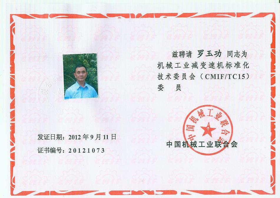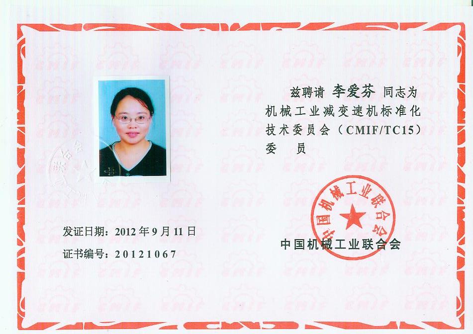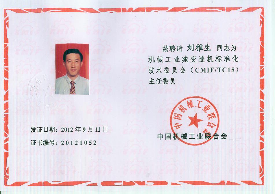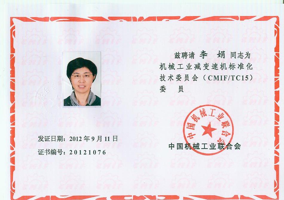 你會《關(guān)于報(bào)送機(jī)械工業(yè)減變速機(jī)標(biāo)準(zhǔn)化技術(shù)委員會(第二屆)換屆文件的函》(機(jī)減標(biāo)委秘字[2012]08號)收悉。經(jīng)研究,同意機(jī)械工業(yè)減變速機(jī)標(biāo)準(zhǔn)化技術(shù)委員會換屆及組成方案。第二屆機(jī)械工業(yè)減變速機(jī)標(biāo)準(zhǔn)化技術(shù)委員會(CMIF/TC15)由29名委員、1名顧問組成(委員名單見附件),劉雅生任主任委員;王瑜、張謙、王金武、姜耀林任副主任委員;劉志新任委員兼秘書長;周有強(qiáng)任顧問。秘書處設(shè)在天津市石化通用機(jī)械研究所。