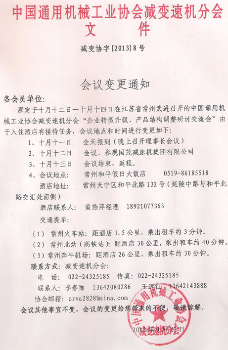 您現(xiàn)在的位置是:減速機(jī)首頁>>新聞資訊>>行業(yè)資訊>>會(huì)議變更通知