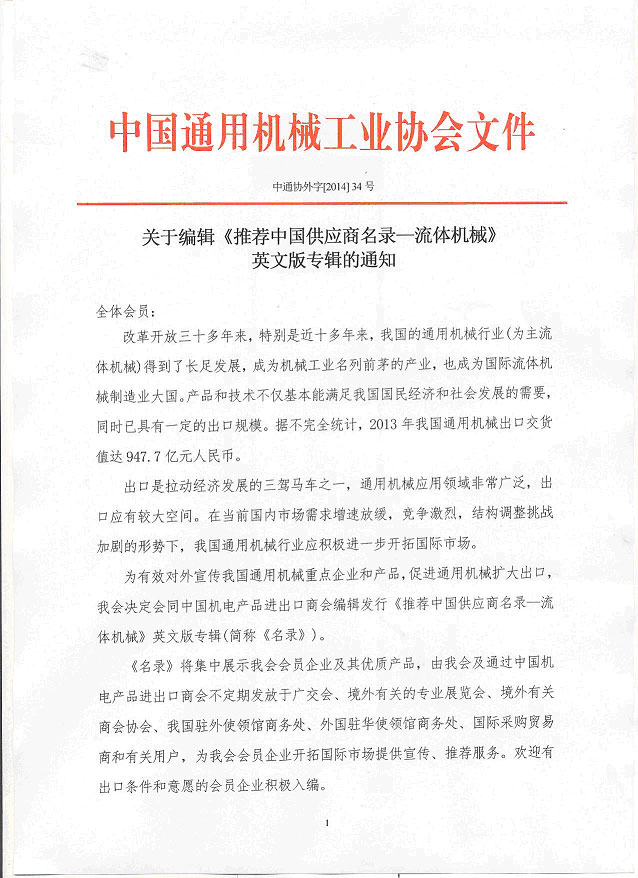 您現(xiàn)在的位置是:減速機(jī)首頁(yè)>>新聞資訊>>行業(yè)資訊>>關(guān)于編輯《推薦中國(guó)供應(yīng)商名錄—流體機(jī)械》英文版專輯的通知