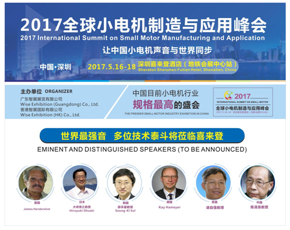 這是一次全球高規(guī)格的年度峰會,一場不容錯過的行業(yè)盛宴!來自世界各地的行業(yè)技術(shù)泰斗、知名企業(yè)及配套企業(yè)、終端企業(yè)的領(lǐng)袖,知名媒體、權(quán)威領(lǐng)導(dǎo)與您共同打造“小電機(jī)行業(yè)最具影響力的盛會"。讓我們相約2017深圳。