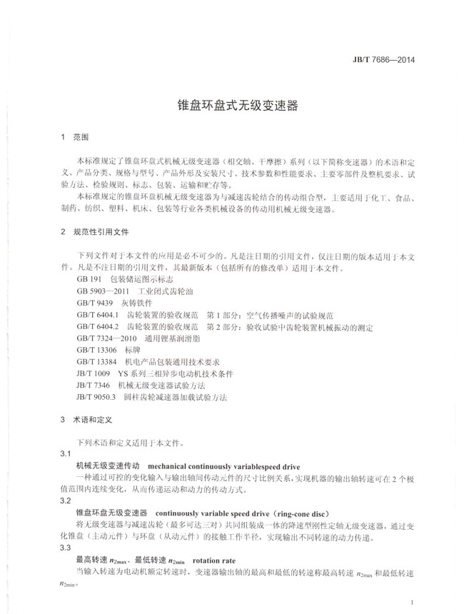 >>錐盤環(huán)盤式無級變速器(JB/T7686-2014)