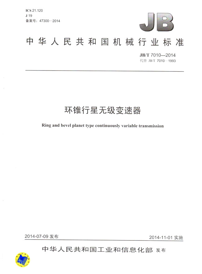 環(huán)錐行星無(wú)級(jí)變速器(JB/T7010-2014)