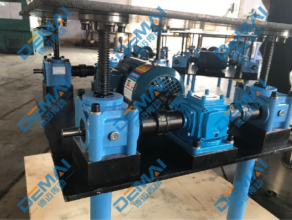 螺旋升降機經(jīng)常與轉(zhuǎn)向箱進行組合安裝,所以我們今天來講一下關(guān)于螺旋升降機與轉(zhuǎn)向箱安裝的一些事。大家都知道,絲桿升降機作為一種傳動部件,在驅(qū)動方式上,它可以手動也可以電動;在使用方式上呢,它不僅可以單臺使用,也可以多臺聯(lián)動使用。在多臺聯(lián)動方案里,轉(zhuǎn)向箱就是必不可少的一個傳動件,因為通過轉(zhuǎn)向箱,才可以把聯(lián)軸器,連接桿,轉(zhuǎn)向箱,或者電機、減速機等設(shè)備及部件聯(lián)接起來。轉(zhuǎn)向箱則是通過螺旋錐齒輪的配合,來實現(xiàn)轉(zhuǎn)向、串聯(lián)、增速、減速等功能的一種齒輪箱,使用同樣很廣泛,比如在礦山,化工,起重,冶金等行業(yè)中都可以用到。
