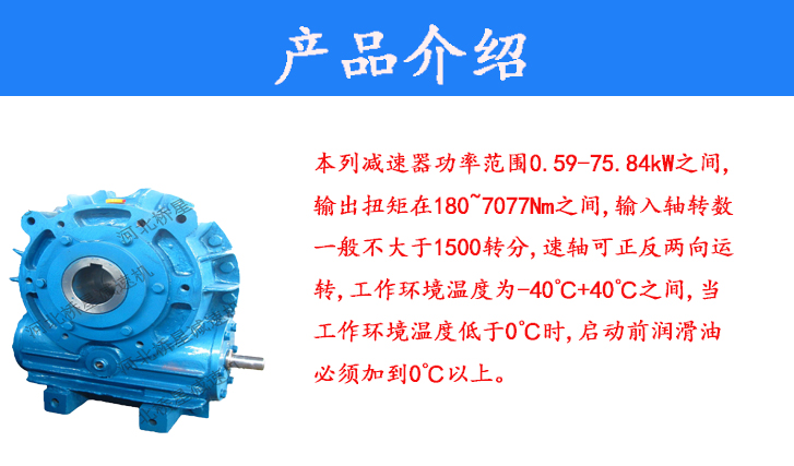 SCW系列圓弧圓柱蝸桿減速機(jī)蝸桿軸轉(zhuǎn)速不超過1500r/min;工作環(huán)境溫度為-40-40℃,當(dāng)工作環(huán)境溫度低于0℃時,啟動前潤滑油必須加熱到0℃該減速機(jī)可正、反向運(yùn)轉(zhuǎn)。