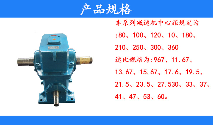 本系列減速機(jī)中心距規(guī)定為:80、100、120、10、180、210、250、300、360
