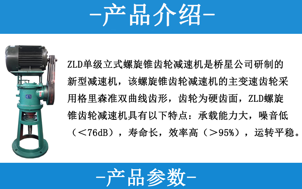 ZLD單級(jí)立式螺旋錐齒輪減速機(jī)是橋星公司研制的新型減速機(jī),該螺旋錐齒輪減速機(jī)的主變速齒輪采用格里森準(zhǔn)雙曲線齒型,齒輪為硬齒面