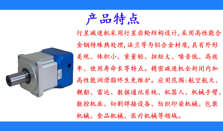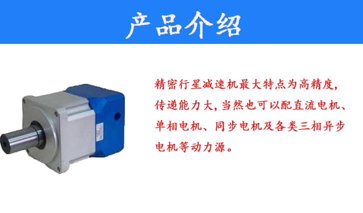 精密行星減速機(jī)最大特點為高精度,傳遞能力大,當(dāng)然也可以配直流電機(jī)、單相電機(jī)、同步電機(jī)及各類三相異步電機(jī)等動力源。