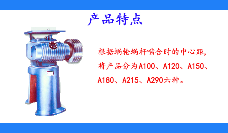 根據(jù)蝸輪蝸桿嚙合時的中心距,將產(chǎn)品分為A100、A120、A150、A180、A215、A290六種。