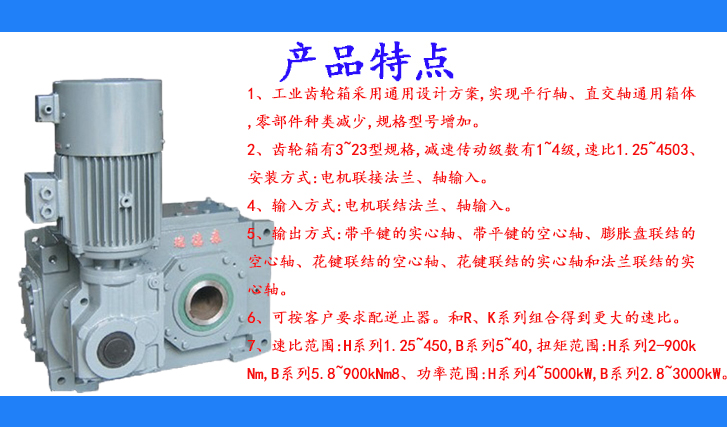 HB標(biāo)準(zhǔn)工業(yè)齒輪箱采用吸音箱體機(jī)構(gòu)、較大的箱體表面積和大風(fēng)扇、圓柱齒輪和螺旋錐齒輪均采用先進(jìn)的磨齒工藝,使整機(jī)的溫升、噪音降低、運(yùn)轉(zhuǎn)的可靠性得到提高,傳遞功率增大。