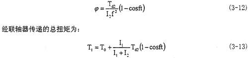上式的解由兩部分組成,即對(duì)應(yīng)的其次方程的通解和本方程的特解。經(jīng)運(yùn)算后可得到聯(lián)軸器所受的諧振扭矩為: